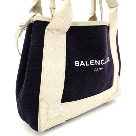 BALENCIAGA Navy Cabas Handbag, Canvas, Beige, 2-Way