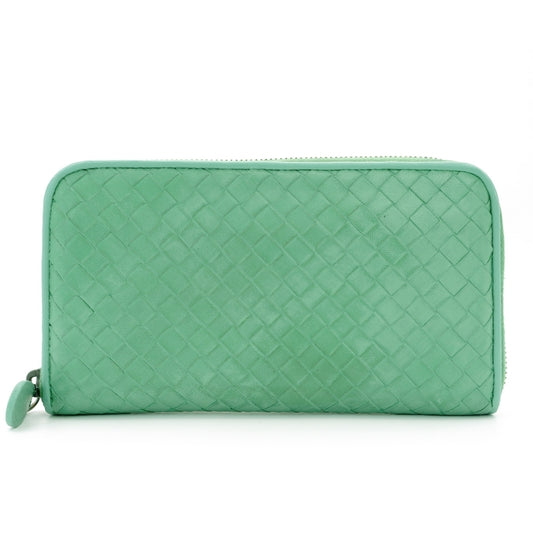 Bottega Veneta Intro Chart Long Wallet Green Leather Round zipper