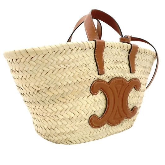 CELINE Classic Panier Triomphe Tote Bag Handbag Raffia Brown 2-Way Logo 7-7-797