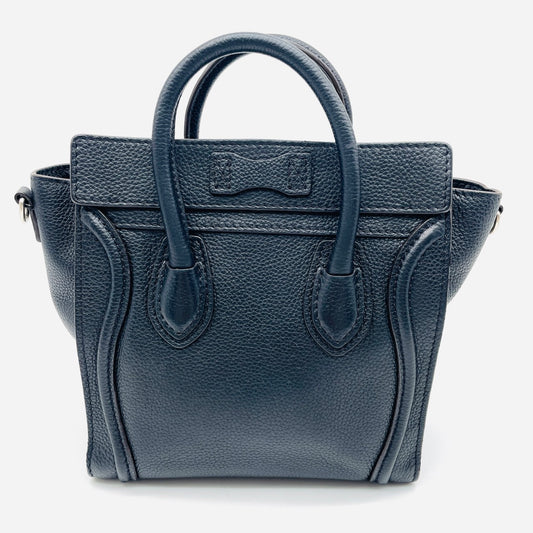 Céline Luggage Micro Shopper Handbag Navy Leather Tote 7-10-468