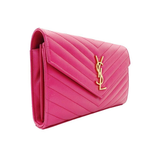 SAINT LAURENT long wallet V-stitched pink leather wallet
