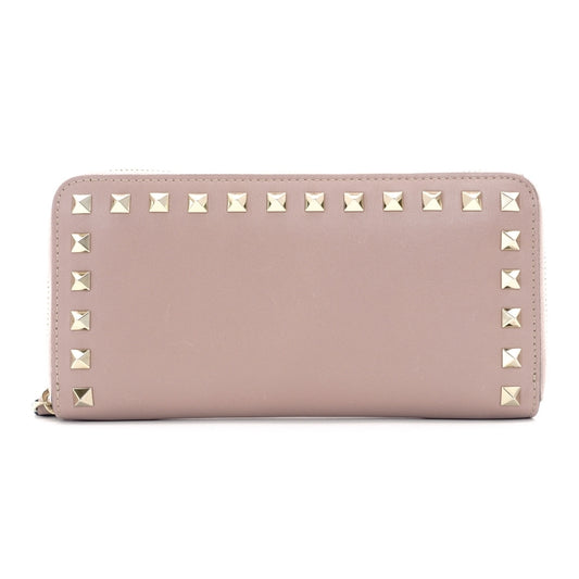 VALENTINO Garavani Leather Long Wallet Pink Leather Studs