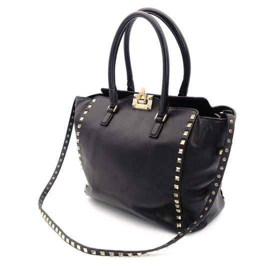 VALENTINO Garavani Tote Bag Studs Black 2way Shoulder Strap