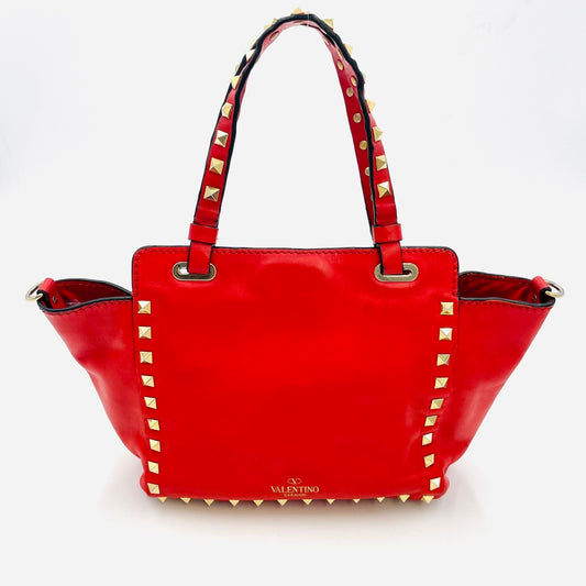 Valentino Garavani Rock Stud 2-Way Handbag Black Leather Black 7-7-1023