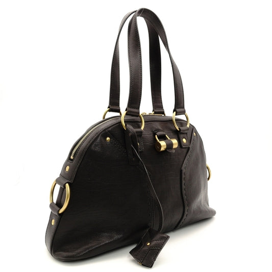 Yves Saint Laurent Muse Handbag Leather Black Vintage Gold Hardware