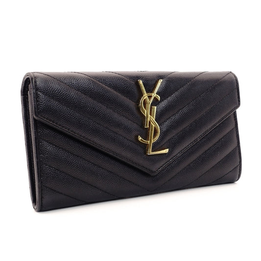 YVES SAINT LAURENT Long Wallet Black Leather V-stitching