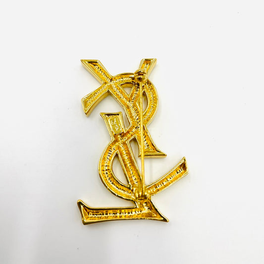 YVES SAINT LAURENT YSL Logo Brooch Gold Women