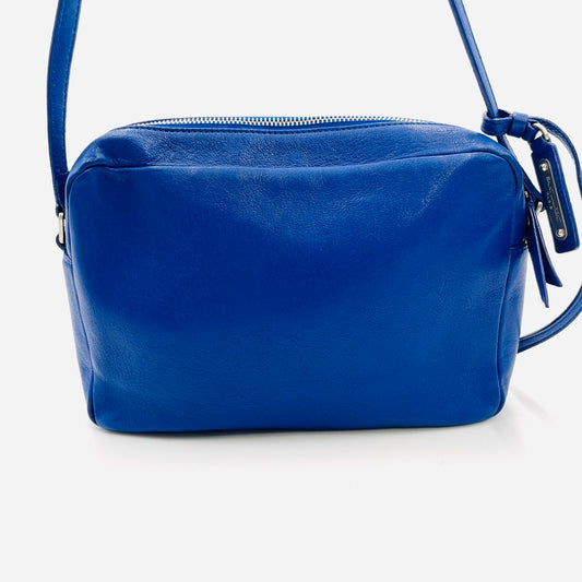 YVES SAINT LAURENT Fringe Shoulder Leather Blue Logo Bag