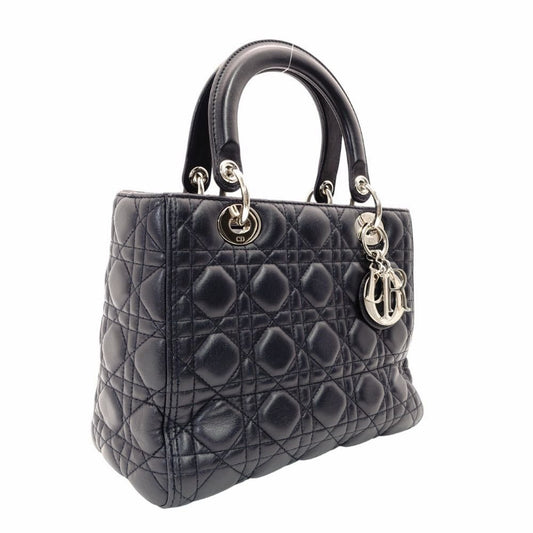 DIOR Lady Dior Medium Cannage Handbag Dark Navy Blue 2-Way Silver Hardware Shoulder R801102