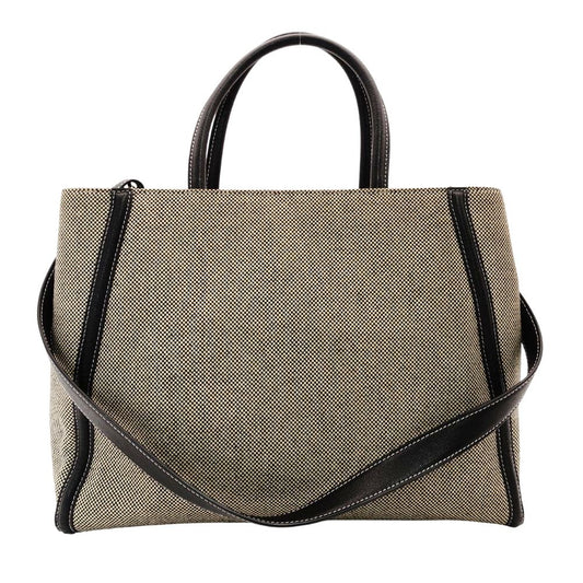 FENDI Toujours Handbag Black × Beige Canvas Leather 2-Way Tote Bag R801481