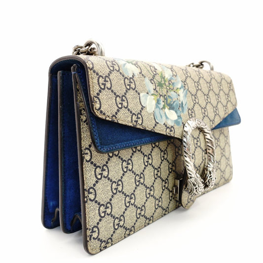 GUCCI Dionysus Flower Shoulder Bag Chain GG Supreme Beige × Blue PVC Suede 7-10-1003