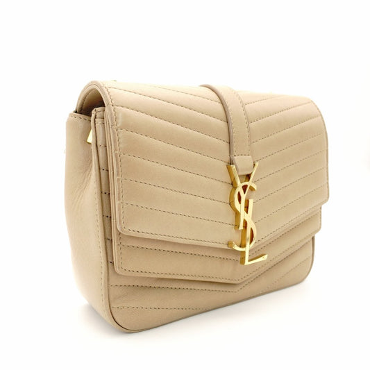 Saint Laurent Surpis V-Stitch Chain Shoulder Bag Beige Leather Gold Hardware YSL Crossbody 7-11-197
