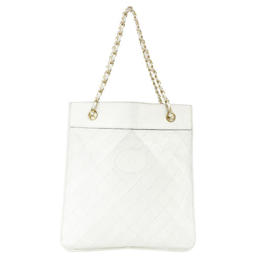 CHANEL Matelassé Chain Shoulder Bag Lambskin White Leather White Crossbody 7-8-760
