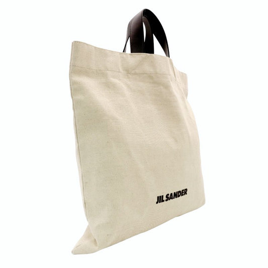 JIL SANDER Tote Bag Canvas Leather Beige × Black Large Size Logo 7-8-495