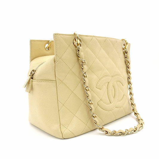 CHANEL Matelassé Caviar Leather Chain Shoulder Bag Beige Leather Shoulder 7-11-070