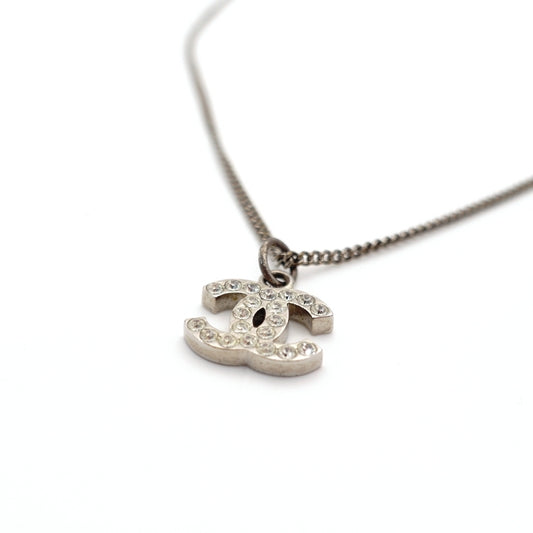 CHANEL Coco Mark Necklace CC Rhinestone Silver A80 7-4-688