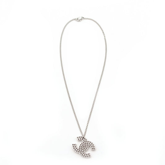CHANEL Coco Mark Necklace CC Rhinestone Silver C12V 7-4-448