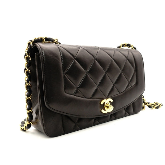 CHANEL Matelasse Diana Lambskin Single Flap Black Chain Shoulder Bag Series 2 Black 7-6-217