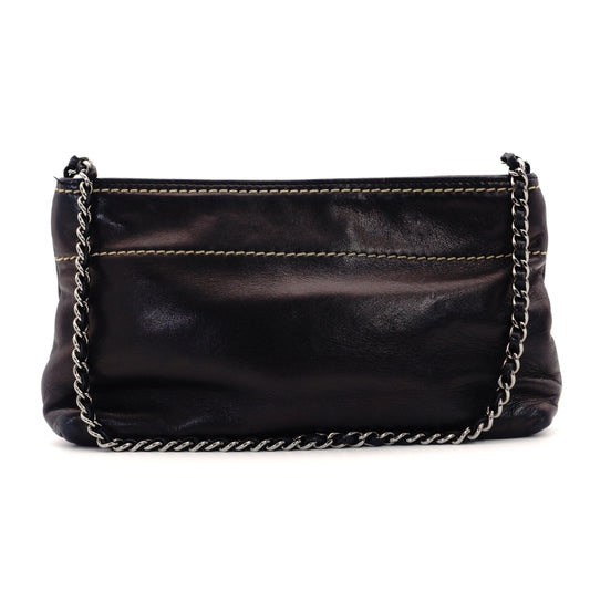 CHANEL Chain Handbag Lambskin Black Leather Black