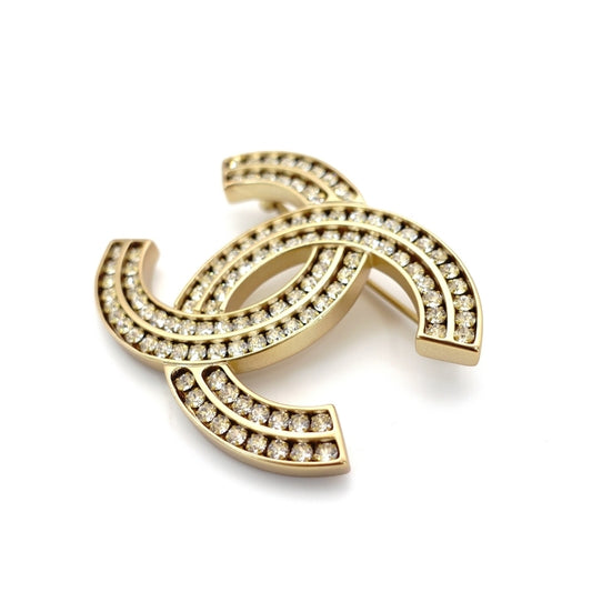 CHANEL Coco Mark Broach Gold Rhine stone Logo