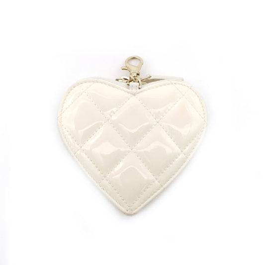 CHANEL Coco Mark Matelassé Patent Leather White Charm Coin Case