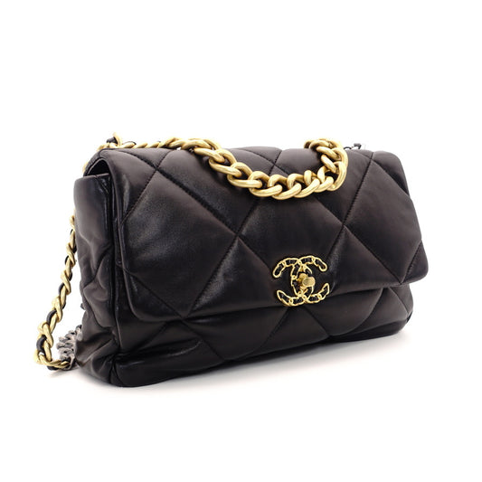 CHANEL 19 Large Shoulder Bag Lambskin Black N9T7H48 Logo Coco Mark 7-6-661