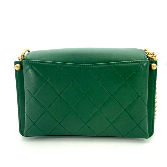 CHANEL Coco mark chain shoulder bag Green Gold Harwere