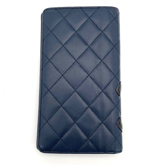 CHANEL Cambon Lamb Skin Long Wallet Navy