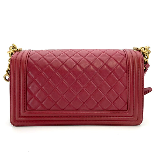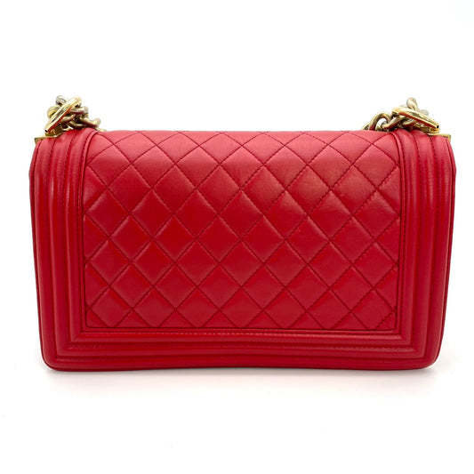 CHANEL Boy Chanel Lambskin Red Gold Hardware