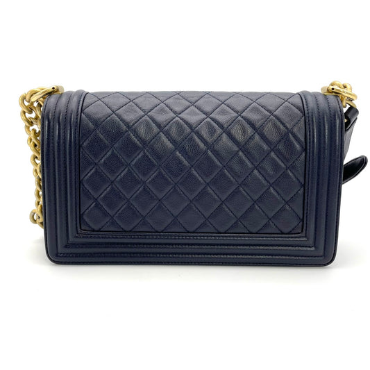 CHANEL Boy Chanel Caviar Skin Navy Gold Hardware