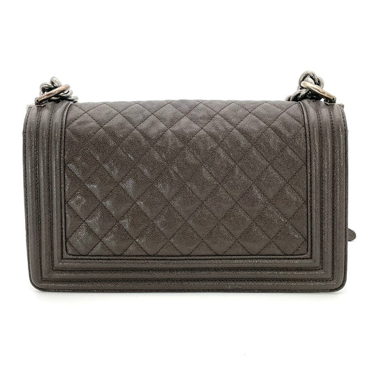 CHANEL Boy Chanel Caviar Skin Gray Silver Hardware