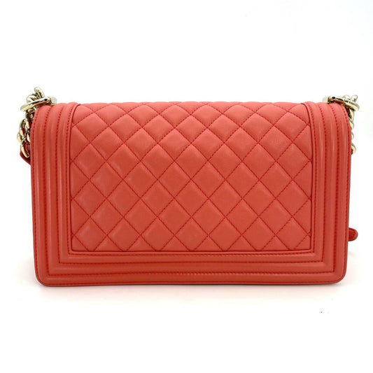 CHANEL Boy Chanel Lambskin Coral Orange Gold Hardware Leather Chain Shoulder Bag