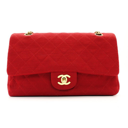 CHANEL Matelassé Cotton Shoulder Bag with Double Flap in Red for Women 6-6-688