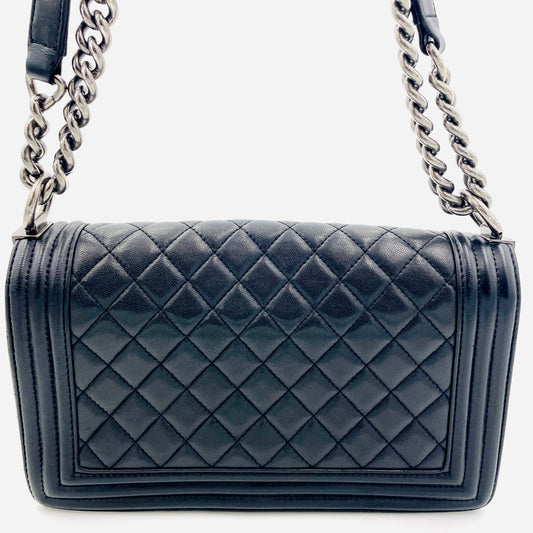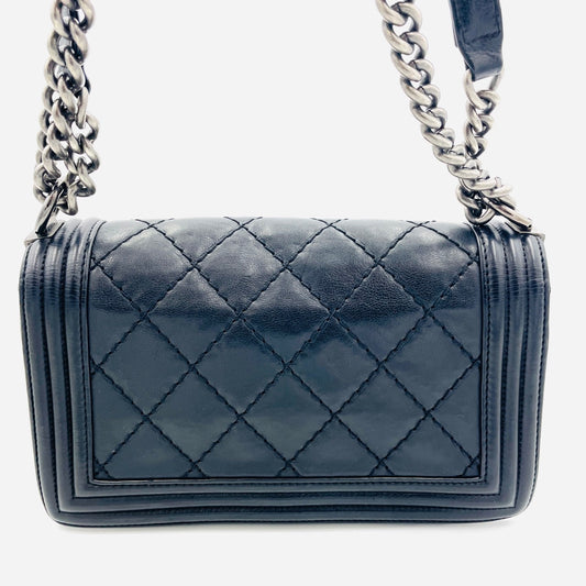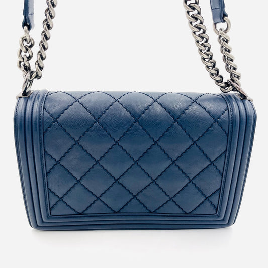 CHANEL Boy Chanel Leather 2Way Navy Chain Shoulder Bag