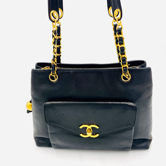 Chanel Matelasse Coco Mark Turn Lock Chain Flap navy Lamb Skin