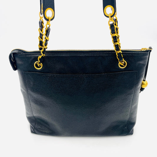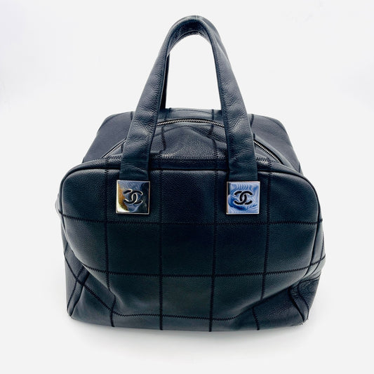 CHANEL CHOCOLATE BAR Soft Caviar Black Leather Handbag Black
