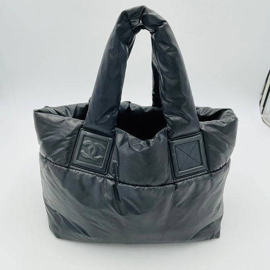 CHANEL Coco Cocoon Nylon Handbag Black Coco Mark Black
