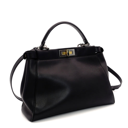 FENDI Peekaboo Handbag 2-Way Leather Black Shoulder Bag 7-5-775