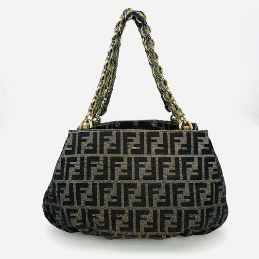 FENDI Zucca Canvas Gold Chain Hand Bag