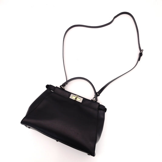 FENDI Peekaboo Handbag 2-Way Leather Black Shoulder Bag 7-5-775