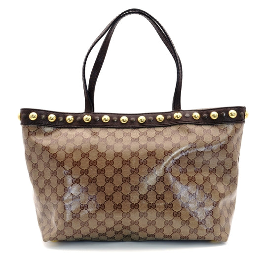 GUCCI Tote Bag GG Crystal Brown Logo PVC Leather Beige
