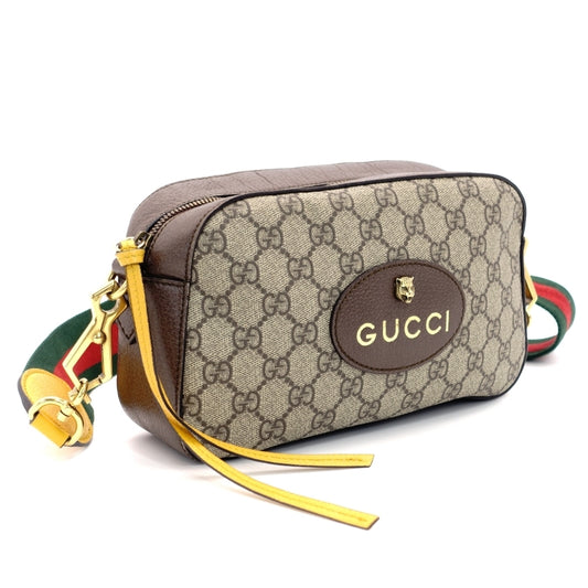 GUCCI GG Supreme Shoulder Bag Beige Logo PVC Leather Brown