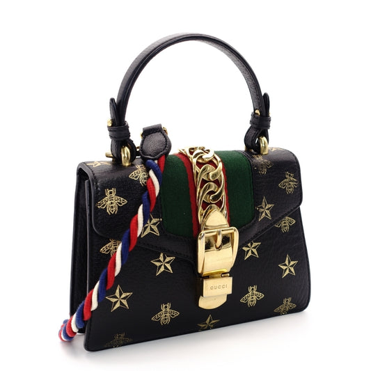 GUCCI Sylvie Handbag Leather Black Multicolor 2-Way Shoulder