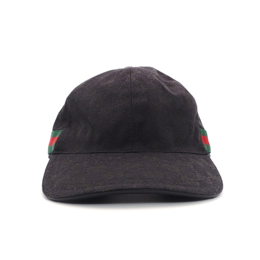 GUCCI Cap Black Canvas Sherry Line Baseball Cap Size L