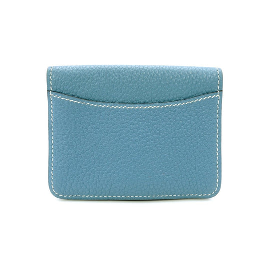 HERMES Dogon Card Case Togo Blue Jean Silver Hardware □L Stamped Leather Blue × Brown 7-12-613