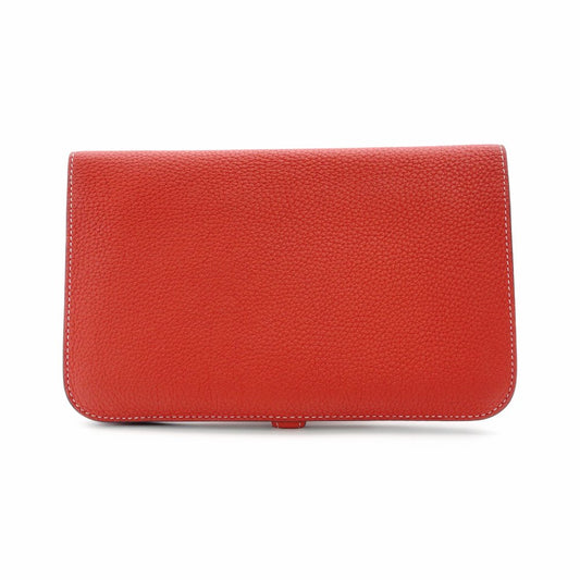 HERMES Dogon GM Long Wallet Leather Red Silver Hardware Wallet □Q Stamped Wallet 7-12-0660