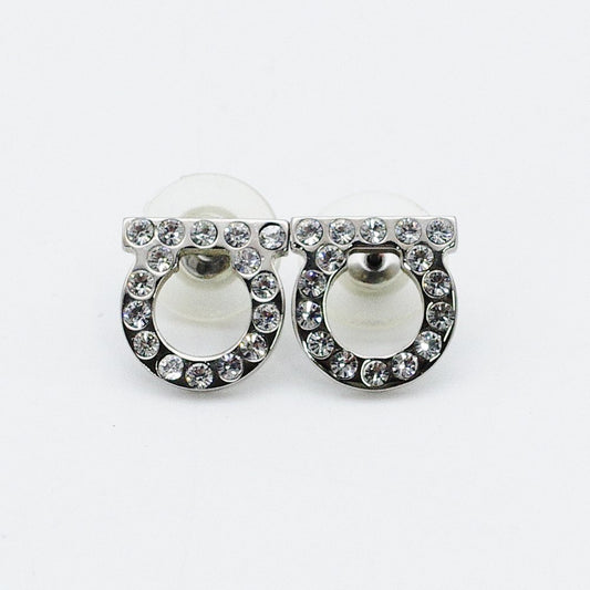 Salvatore Ferragamo Gancini Rhinestone Earrings Silver 7-12-718