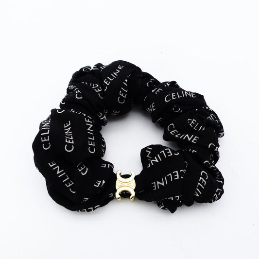 Celine Triomphe Scrunchie Black 100% Silk Logo Black Box Included 7-12-274