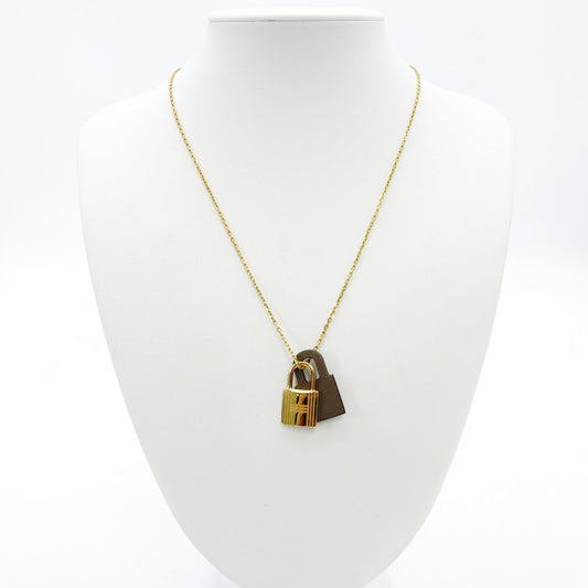 Hermès O'Kelly Necklace Etoupe × Gold Z-Stamped Leather Greige 7-10-573