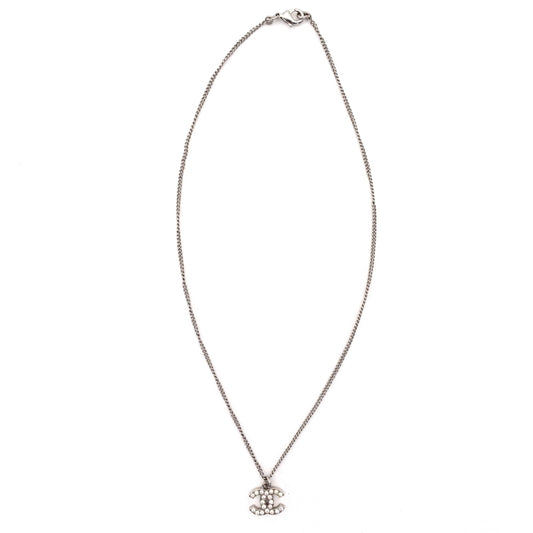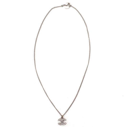 CHANEL Coco Mark Necklace CC Rhinestone Silver A80 7-4-688